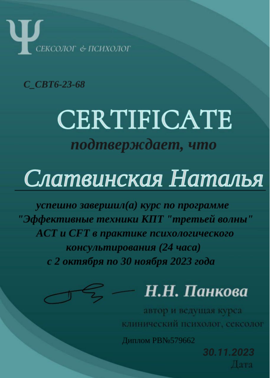 Выбор своего психолога - основа эффективного взаимодействия. Поймет ли он, подберет ли нужный инструмент - специалист должен быть эмпатичным, чтобы гарантированно оказать помощь. Поэтому я постоянно изучаю новые методики для решения конкретных проблем